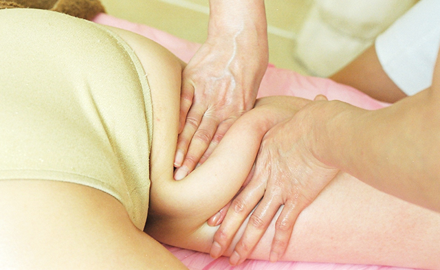 ガラシャ独自の揉撚法による脂肪分解術で、脂肪球を体の奥からギュッと引き寄せ、はじくように揉みほぐします。セルライトはもちろん、かなり深部の筋肉繊維にからんだ脂肪にまで届く、強力マッサージです。