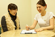 お客様一人一人の体質を理解するために、カウンセリングシートにご記入いただきます。普段の食生活や、ライフスタイルを聞いた上で一人一人によって違う悩みに対し真摯に受け止め、その人に合う内容の施術を決めます。終始なごやかなカウンセリングに、緊張もほぐれます。