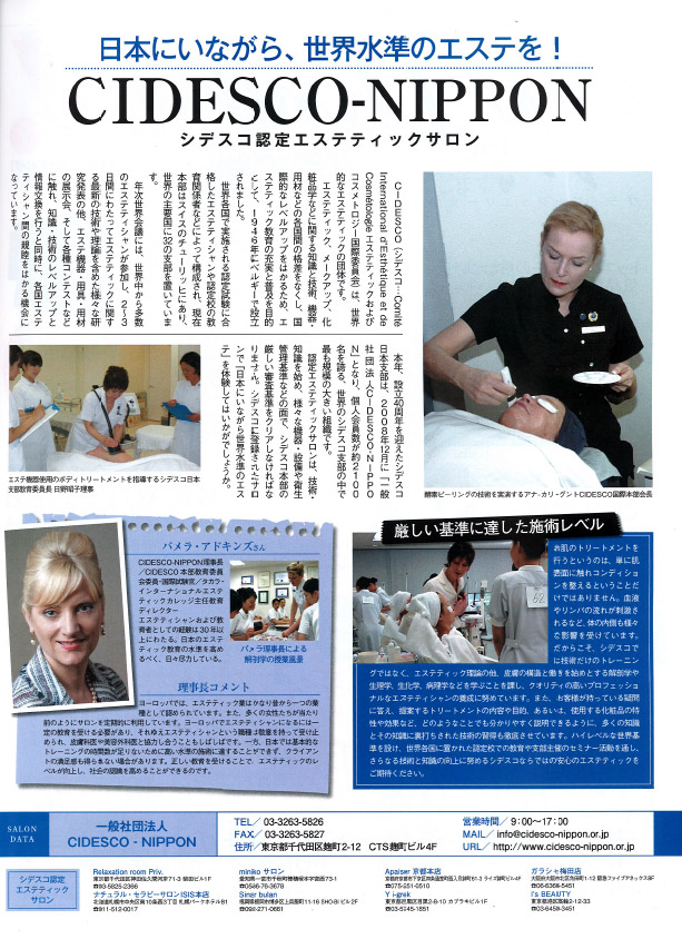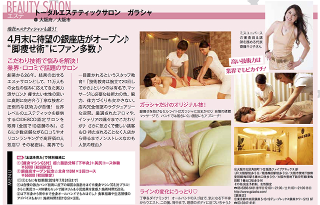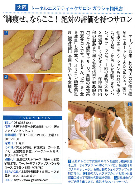 「CLASSY.2013年8月号」のCIDESCO-NIPPON特集ページに、国際認定サロンとしてガラシャ梅田店が紹介されました!